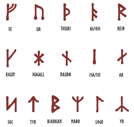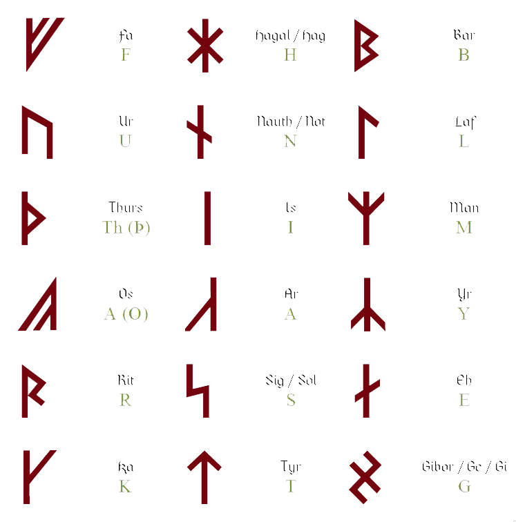 Riimujen pitkä historia lyhyesti Riimujen nimitys juontuu sanasta raunen (saksa: kuiskata) ja rùn (iiri: salaisuus) eli ne merkitsevät salaisuutta tai kätkettyä. Vanhan Futharkin nimi juontuu sen ensimmäisestä kuudesta kirjaimesta tai pikemminkin foneemista: F, U, Th, A, R, K. Skandinaavien lisäksi niitä käyttivät gootit, muinaissaksit, friisit, alamannit sekä muinaisenglantilaiset eli germaaniset kansat. Nykytiedon mukaan riimujen alkukehto oli Alppien vuoristo tai niiden eteläpuoli, jossa merkit muotoutuivat noin 200 vuotta ennen ajanlaskumme alkua. Alkuajankohtaa on hankala määritellä, sillä merkit ovat ottaneet vaikutteita kalliopiirroksista, taikamerkeistä ja muiden kansojen kirjoitusmerkeistä. Riimut levisivät vuorten yli nykyisen Saksan alueelle ja sieltä Pohjois-Euroopan kansojen pariin ja aina Islantiin saakka. Riimukirjoitus säilyi jonkin aikaa kristinuskon vallatessa alaa ja riimuilla saatettiin kirjoittaa hautakivien takapuolelle siinä missä etupuolella oli latinalaisia aakkosia. 700-luvulle tultaessa kirkko oli saanut kitkettyä pakanallisena pitämänsä merkistön pois julkisesta käytöstä. Vanhan uskonnon harjoittajat jatkoivat riimujen käyttämistä enemmän tai vähemmän salassa. Elder Futhark, Wikimedia Monta eri riimustoa Riimut olivat alkujaan suoria viivoihin